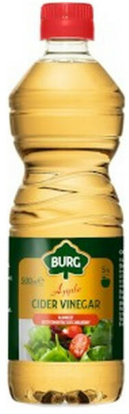 Termék leírás: Burg almaecet 5% Összetevők: almaecet, színezék (E150c), tartósítószer (E224), ecetsav tartalom: 5 g/100 ml. Allergének: Allergének az összetvők között nagybetűvel jelennek meg! Egyéb allergén információk : A termék nem tartalmaz allergén anyagot! Származási ország: Cseh köztársaság Átlagos tápérték 100 g termékben:
